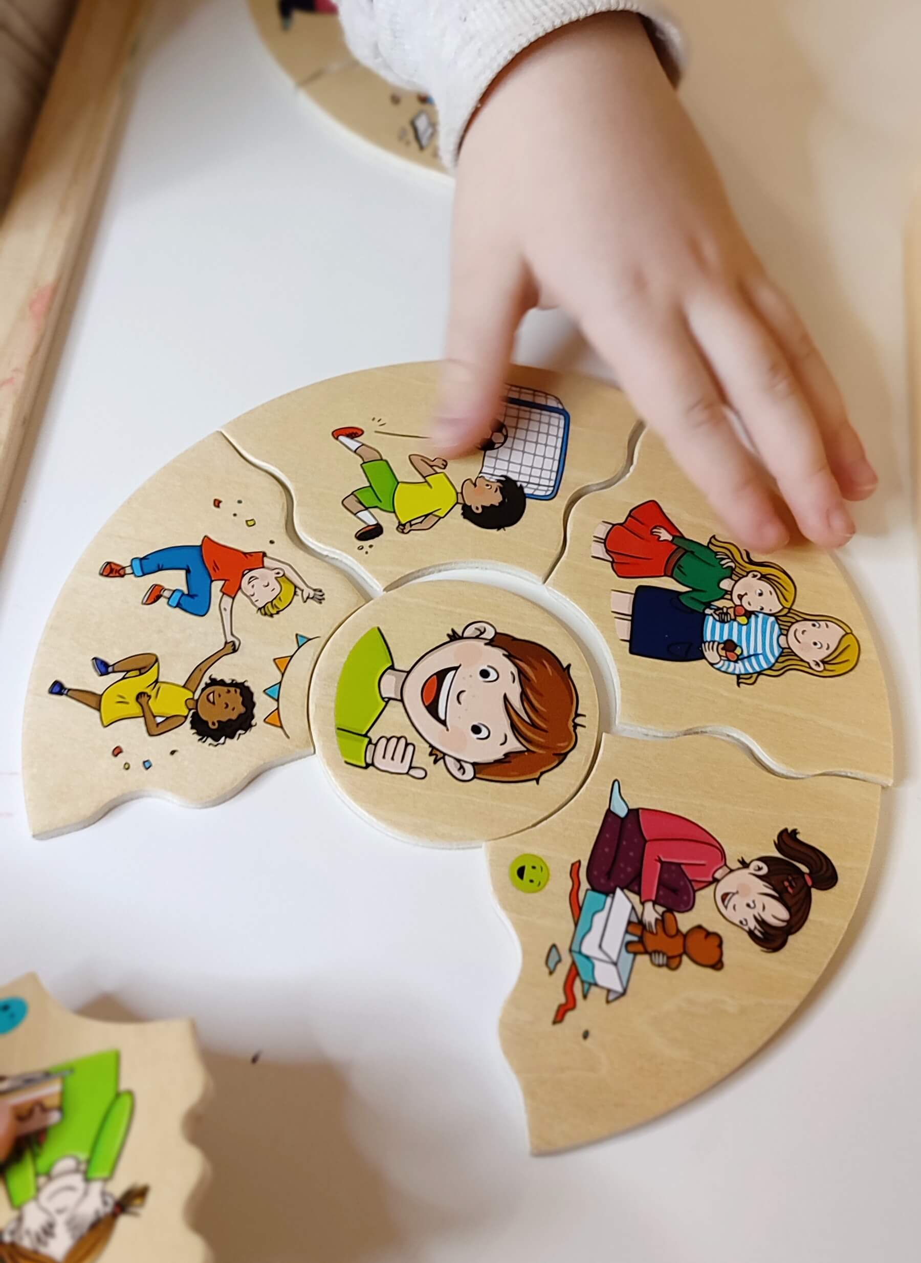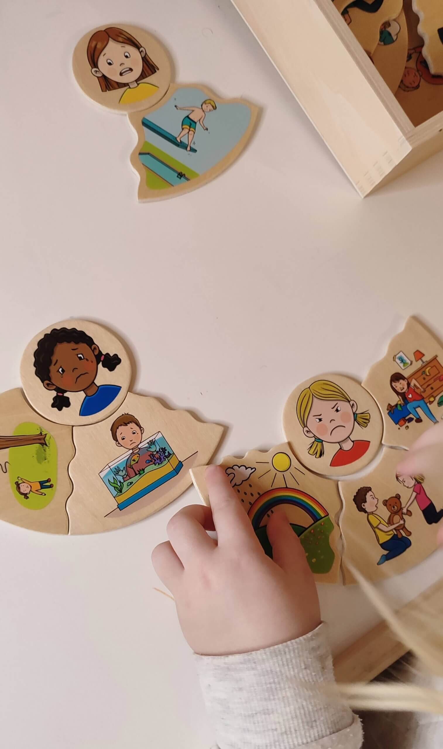 Iga emotsioonipildi juurde tuleb valida 5 pildiklotsi, millel olevad situatsioonid võivad antud emotsiooni esile kutsuda. Laps asetab need ringikujuliselt ümber vastava emotsioonipildi.