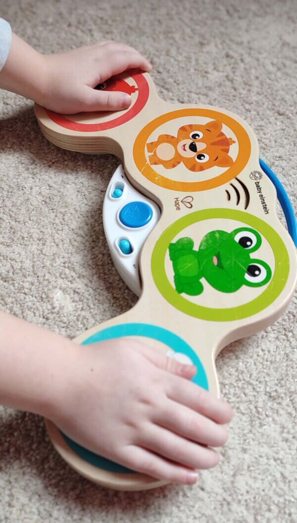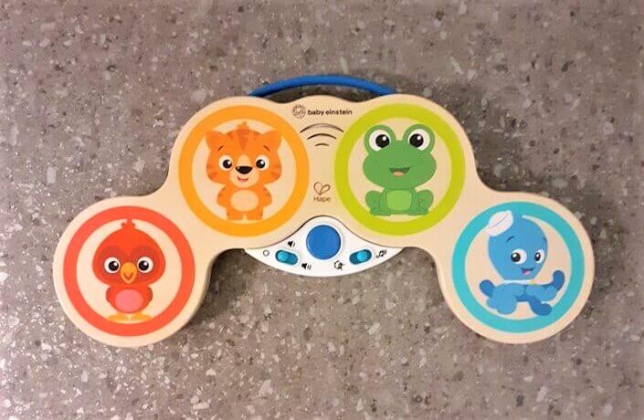Hape puidust trumm on kvaliteetse heliga – 4 eri trummi reageerivad puutumisele ning kergele löögile. Saab valida ka muusika taustaks, et muusika rütmis trumme kaasa mängida.