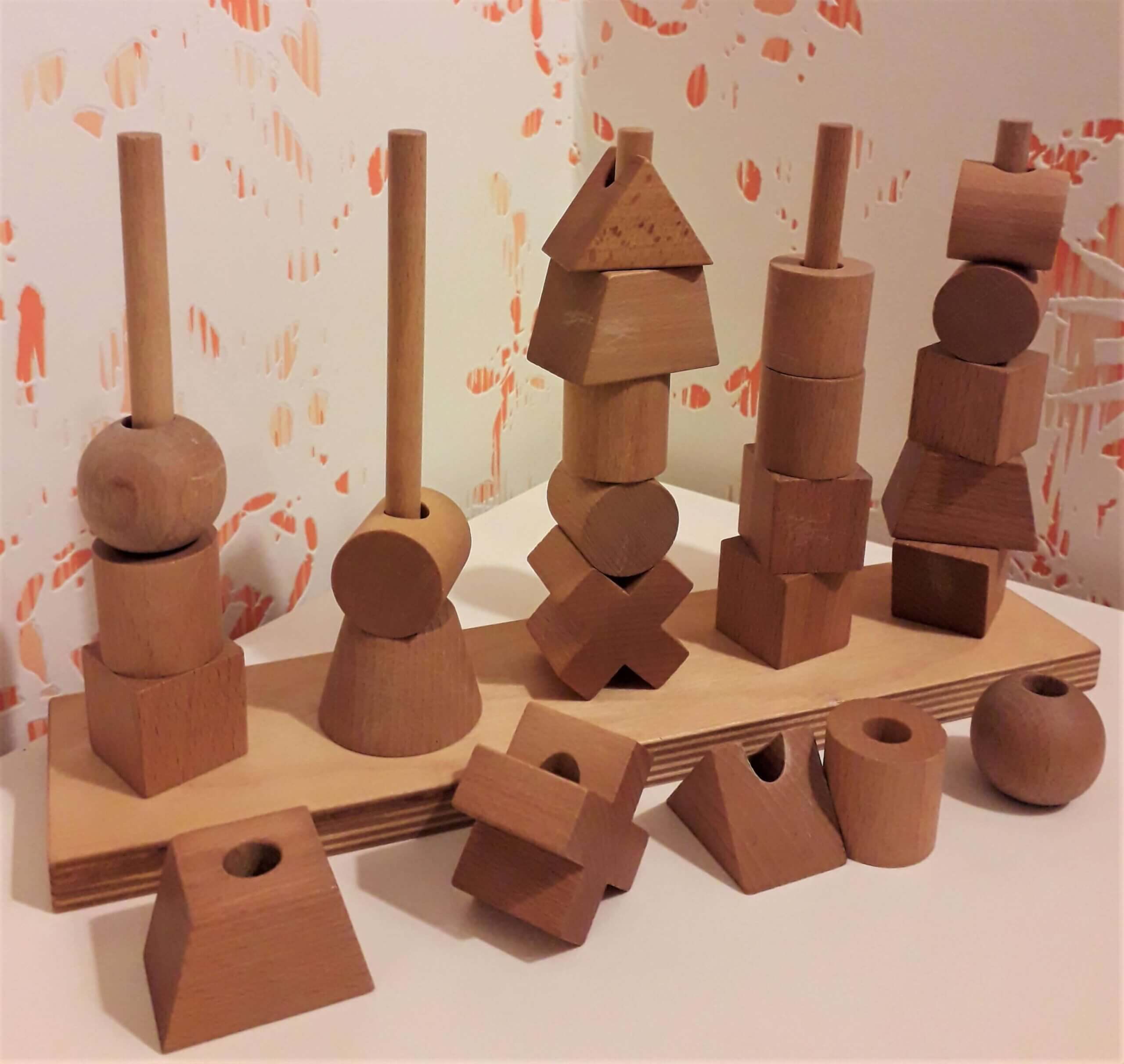 ESMAKORDSELT EESTIS Wooden Story käsitööna valmistatud kujundite ladumise mänguvahend.