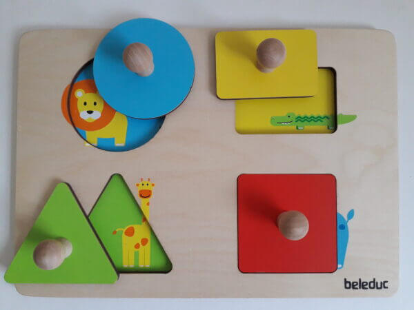 Beleduci vahva pusle, kus loomad on osalt peidus. Samas saab tundma õppida nii kujundeid kui värve.
