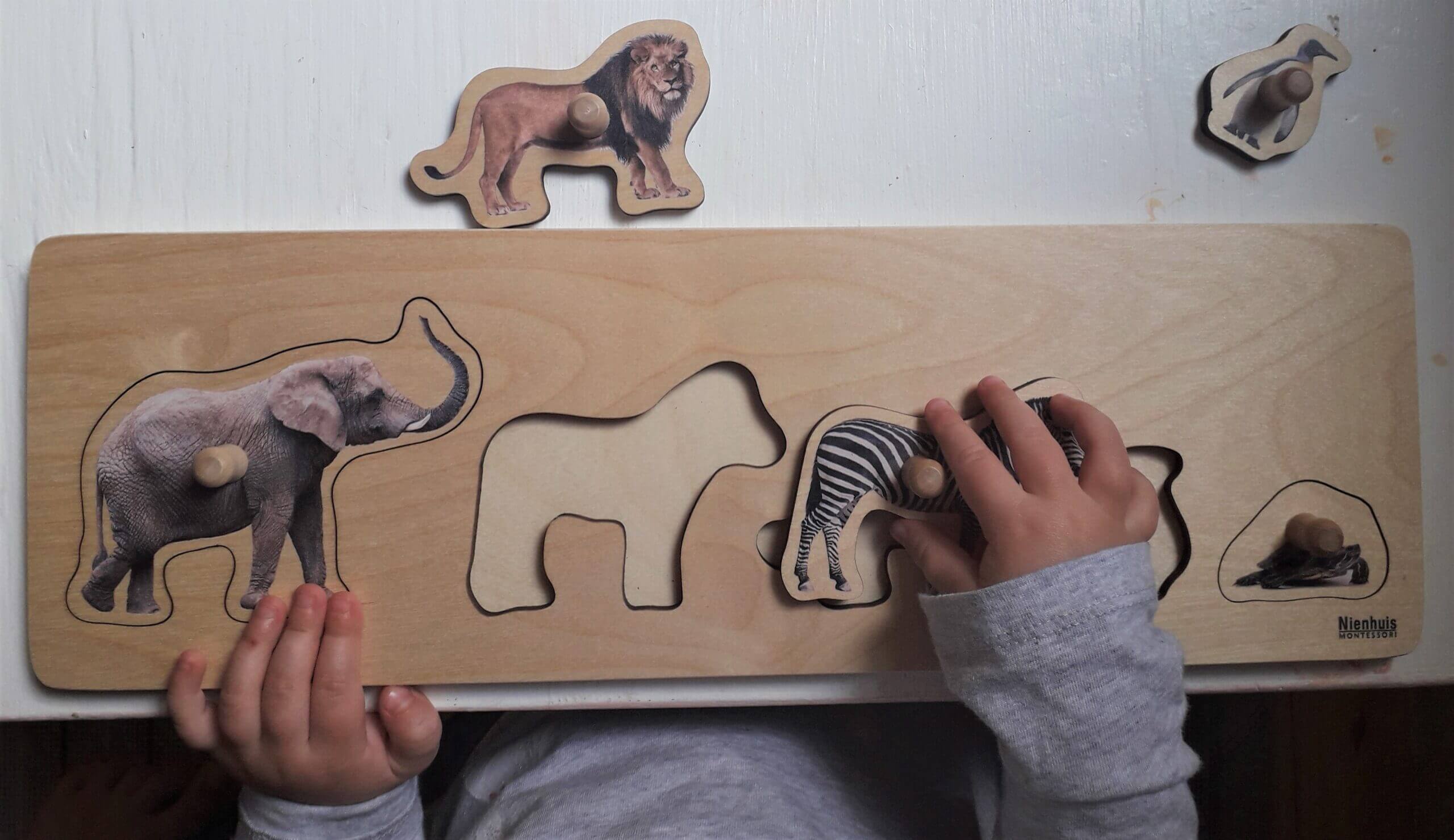 Nienhuisi, kui kvaliteetsete Montessori mänguvahendite ja puslede tootja viie loomaga pusle.