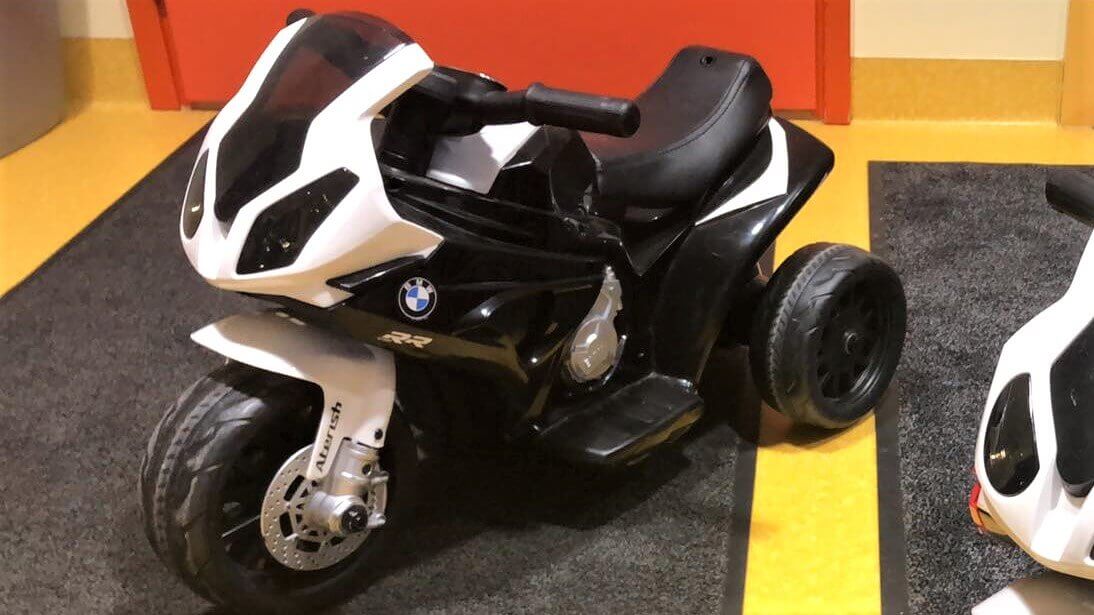 Laetav elektriline mootorratas väikelapsele, mille kiirus on parajalt väike. Mootorrattal on gaasipedaal, mis paneb ratta liikuma.