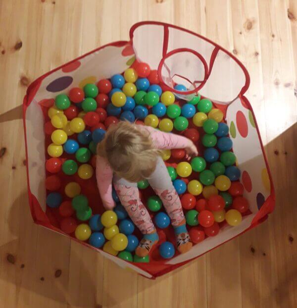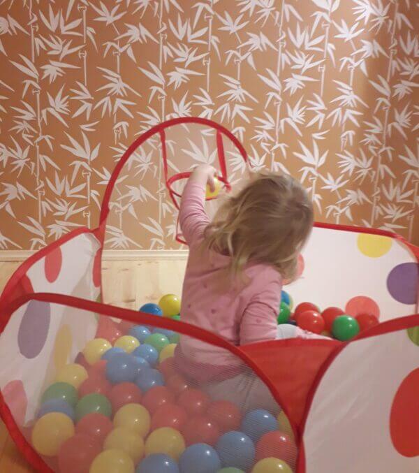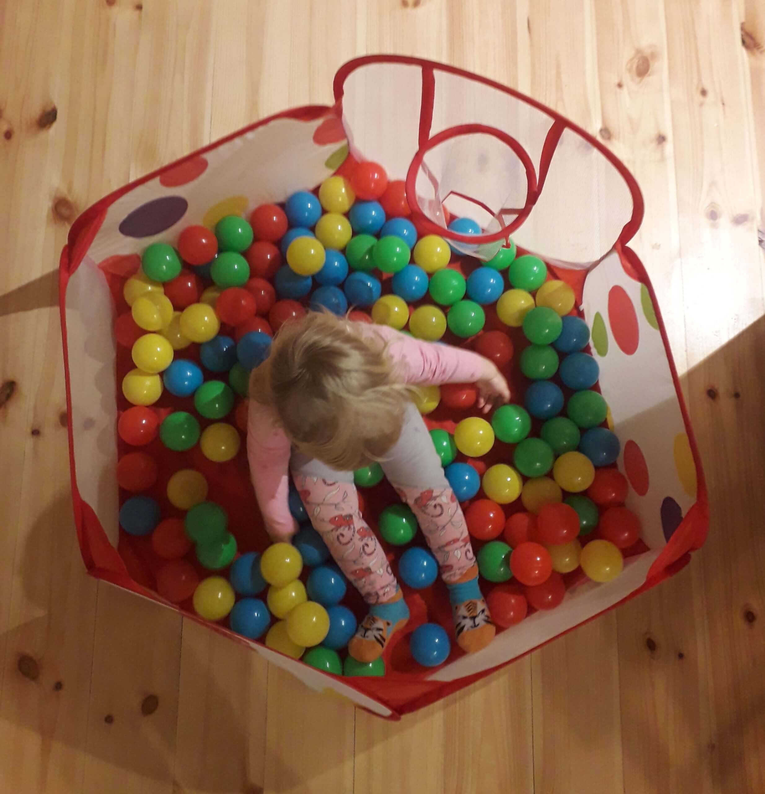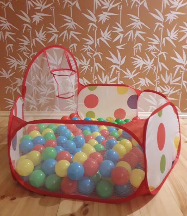 Pallimeri koos 250 palliga. Lõbu lisab korv, kuhu palle visata!