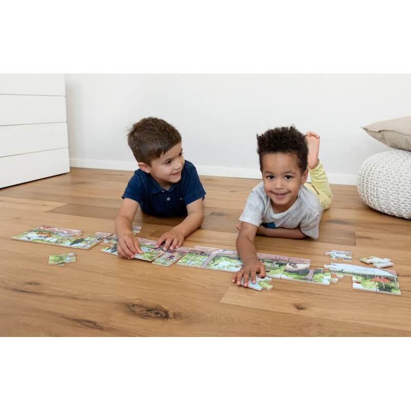 Suurte tükkidega põrandapusle, mis lisaks käe ja silma koostöö harjutamisele pakub hulgaliselt avastusrõõmu loomade leidmiseks ja tundmaõppimiseks.