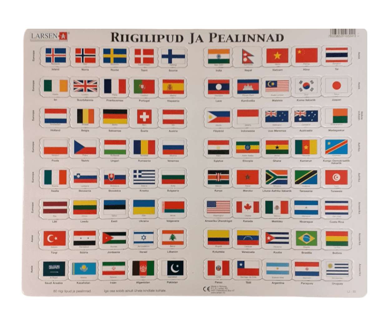 Ideealne pusle riigilippude ja pealinnade tundmaõppimiseks.