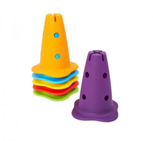 - Takistusraja, millesse kuulub 3 rõngast, 6 pulka ja 6 koonust, saad ehitada täpselt endale (ja lastele) meelepärase, sest võimalusi on nii mitmeid. Koonuste külge saab kinnitada pulki nii horisontaalselt kui vertikaalselt, kuid samuti rõngaid. Lisaks võib rada täiendada endale meelepäraste lisavahenditega.