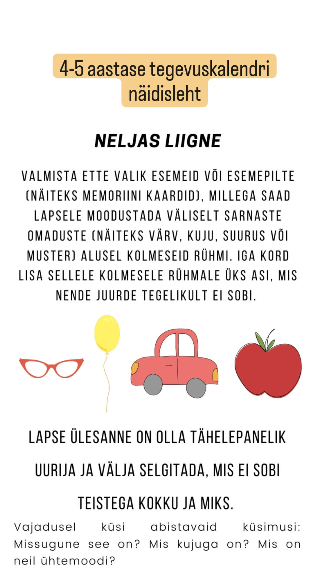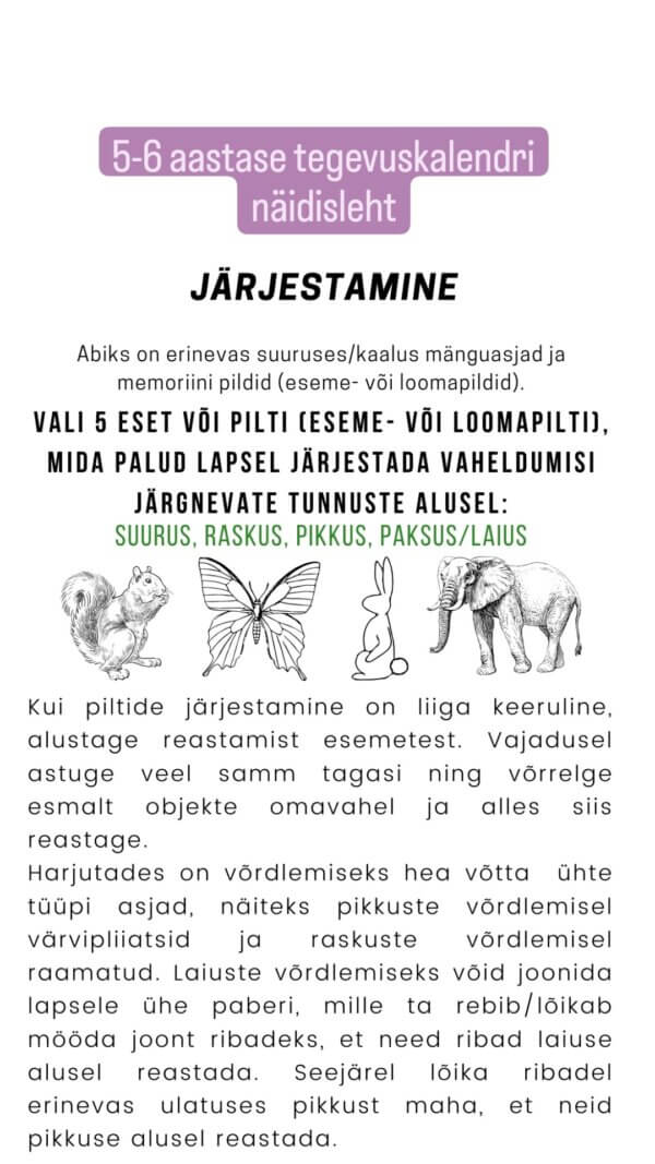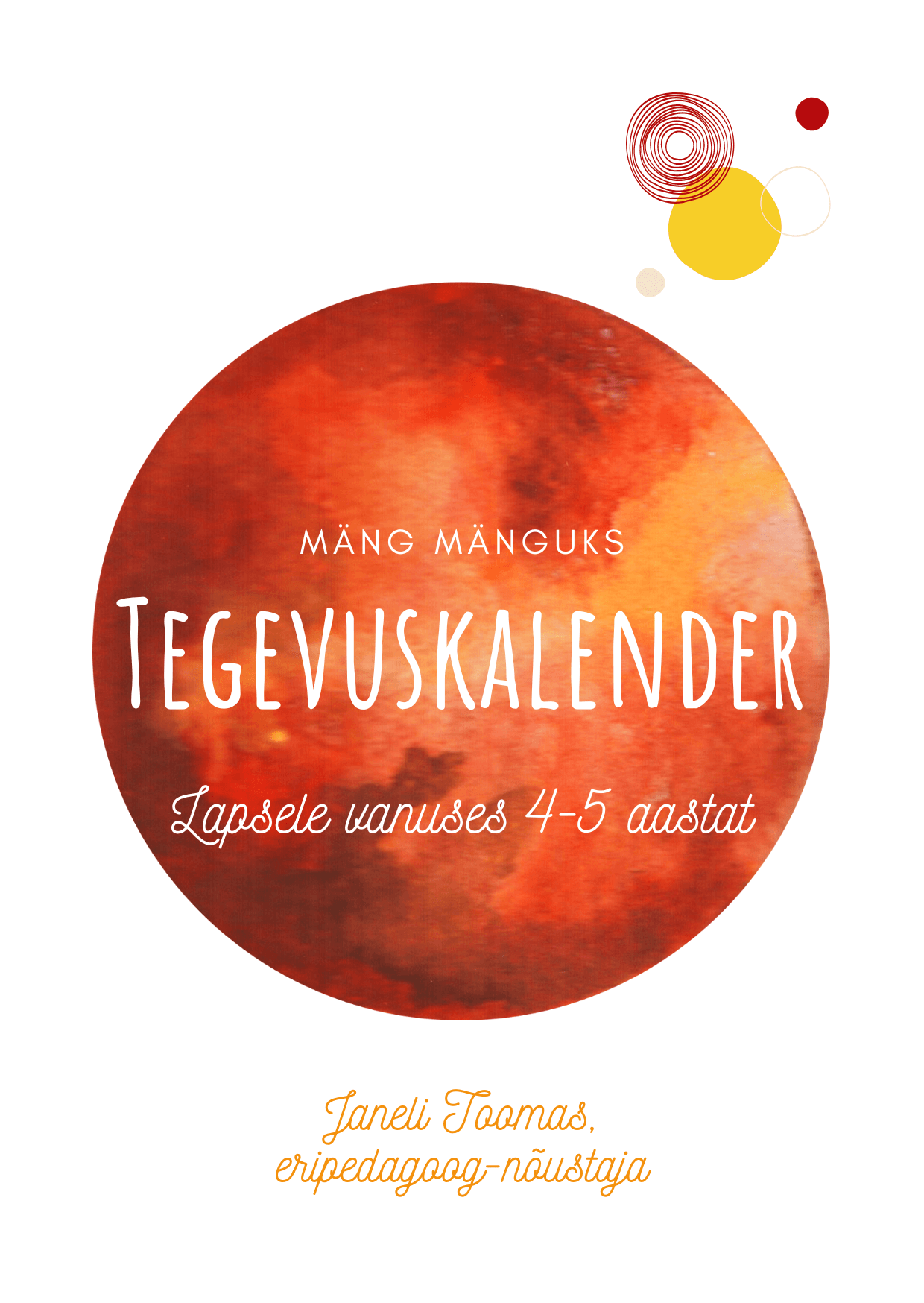 Eripedagoog Janeli Toomas on koostatud lapse arengut toetavate tegevuste kogumikud. Kui kodus jääb ideedest puudu, mida lapsega teha, siis need on ideaalsed abivahendid. Siin on tegevuskalendrid vanusele 4-5. aastaste ja 5-6. aastast.